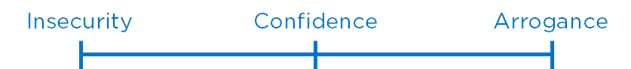 As you can see from this continuum, confidence is the balance point between insecurity and arrogance. The truly confident person is still open-minded, persuadable, and interested in evidence and different points of view. An arrogant person is only interested in getting their way and solidifying their power.